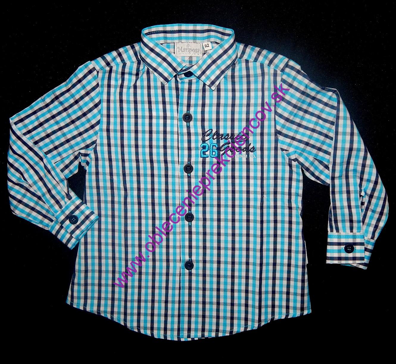 Košeľa klasického strihu v bielo-modro-tyrkysovej farbe.
