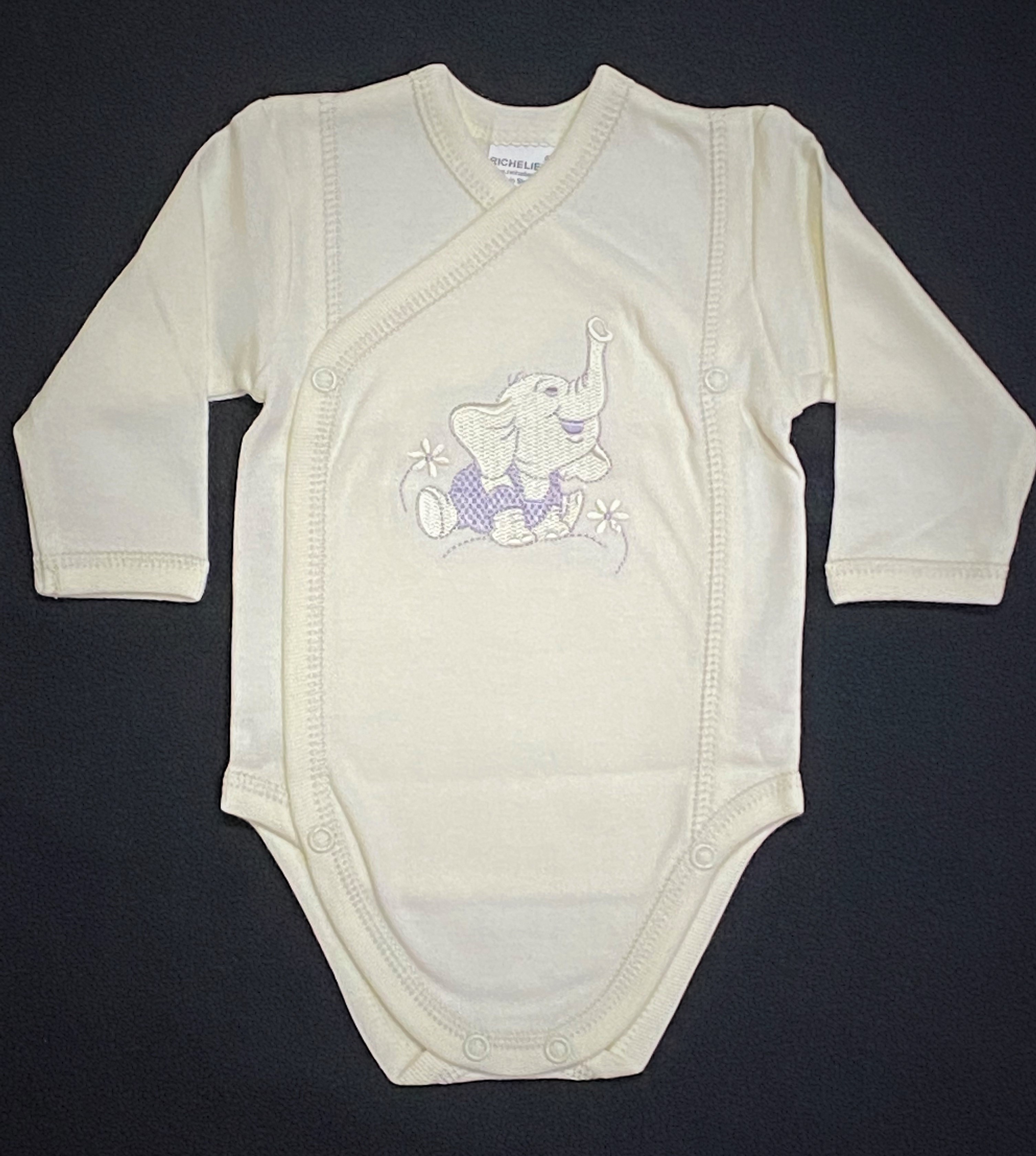 Kvalitné bavlnené prekladacie body s nášivkou sloníka na prednej časti.