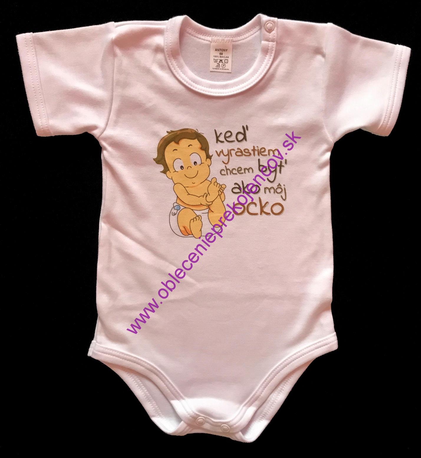 Bavlnené body s krátkym rukávom s vtipnou potlačou na prednej časti. Zapínanie je aj na pliecku na patentku.