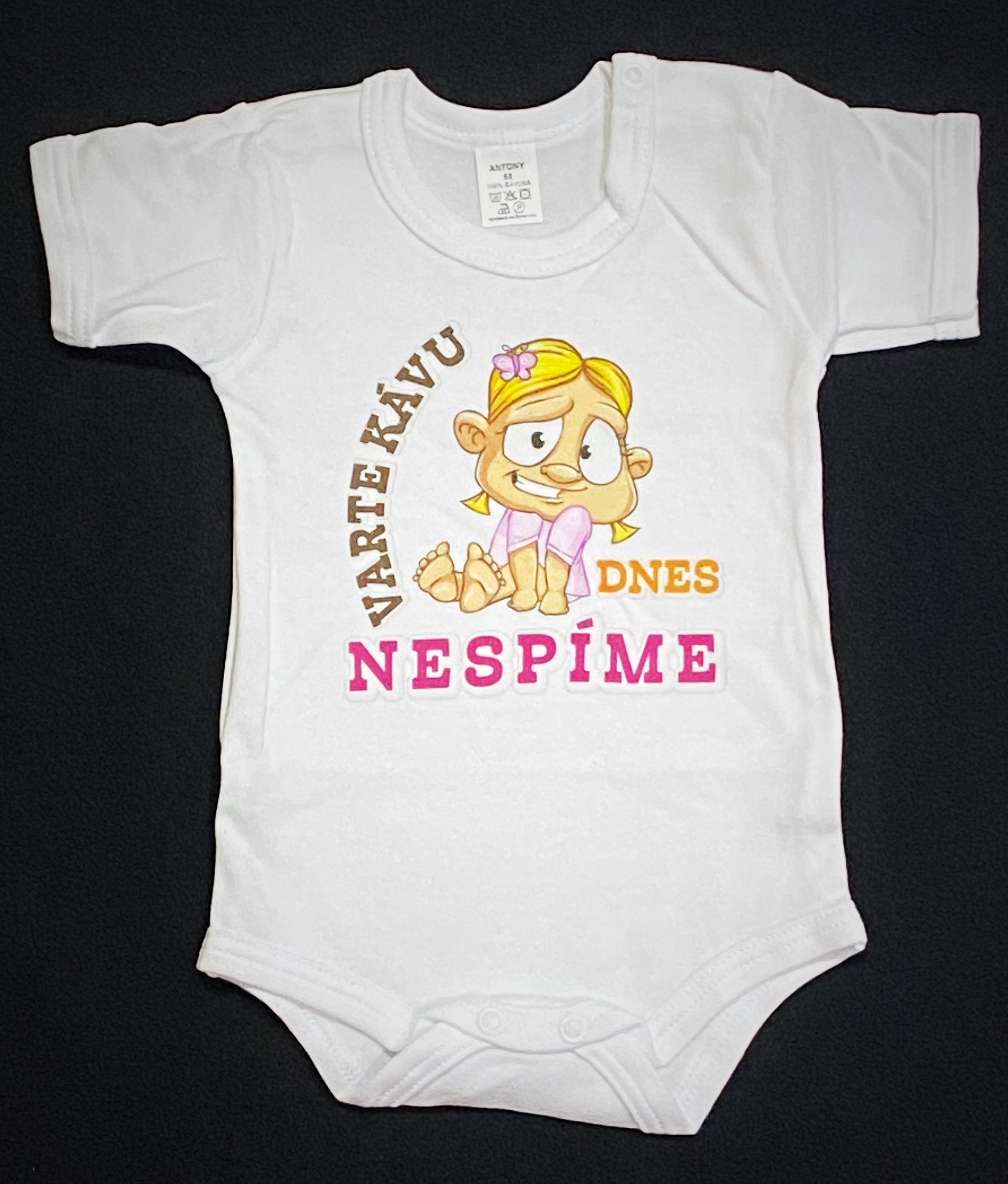 Bavlnené body s krátkym rukávom s vtipnou potlačou na prednej časti. Zapínanie je aj na pliecku na patentku.