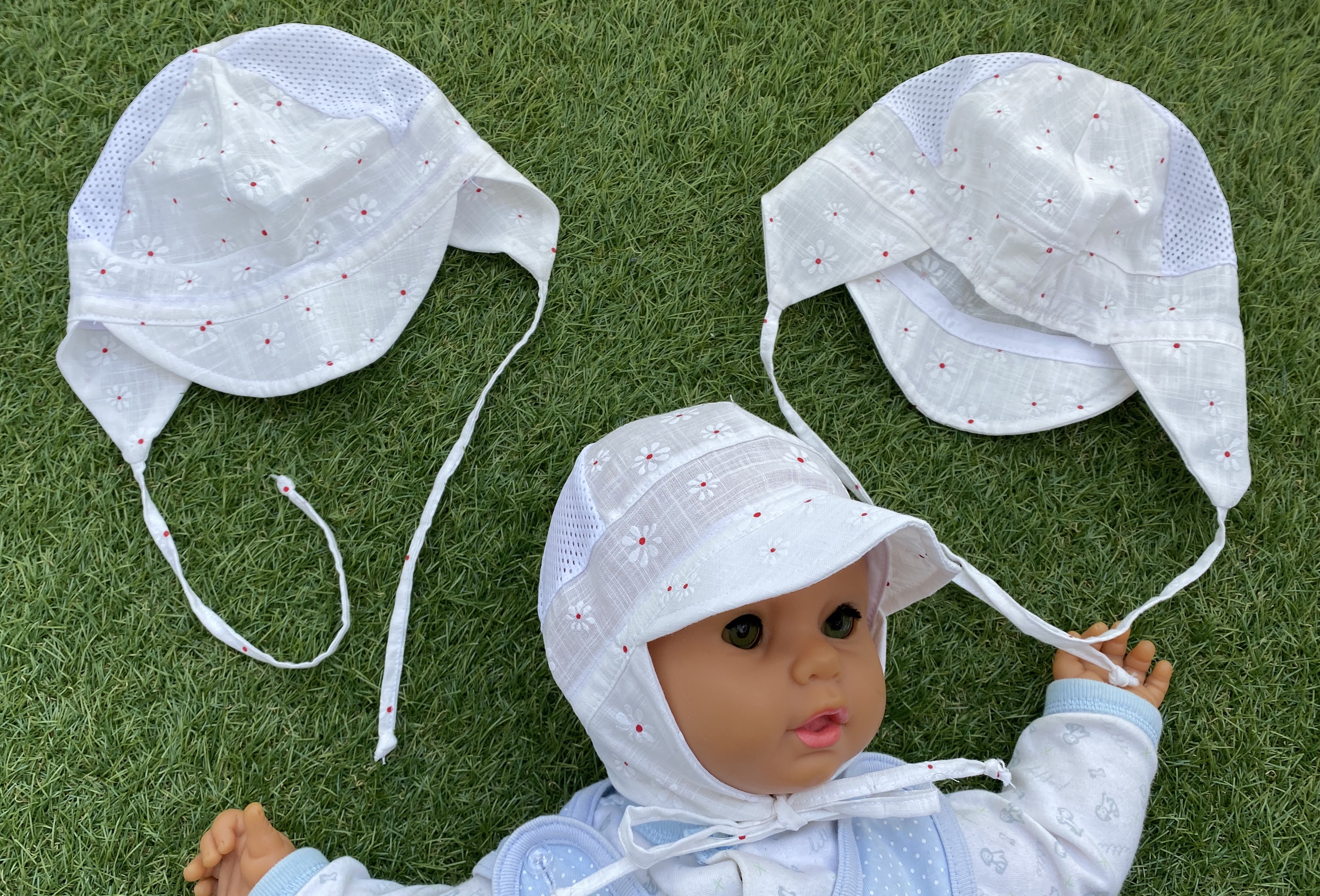 ČIAPKA kojenecká "plátená"krémová s kvietkami