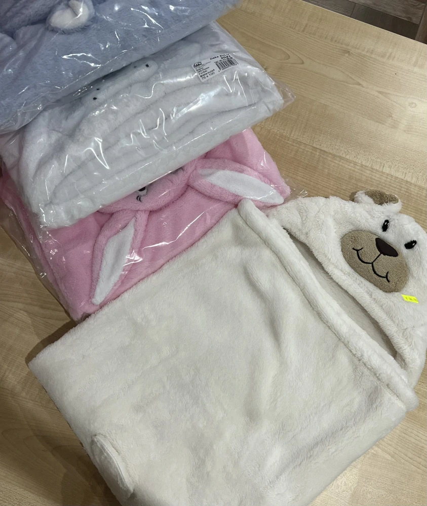 Predstavujeme vám deky s veselou kapucňou a hravými motívmi – zajaca, macka, hrošíka a tuleňa. Tieto mäkučké deky sú ideálnym spoločníkom pre vaše dieťatko počas chladných dní. Sú dostupné v krásnych farbách: krémová (macko), biela (tuleň), modrá (hrošík) a ružová (zajko), takže si môžete vybrať ten pravý motív pre vášho drobca.