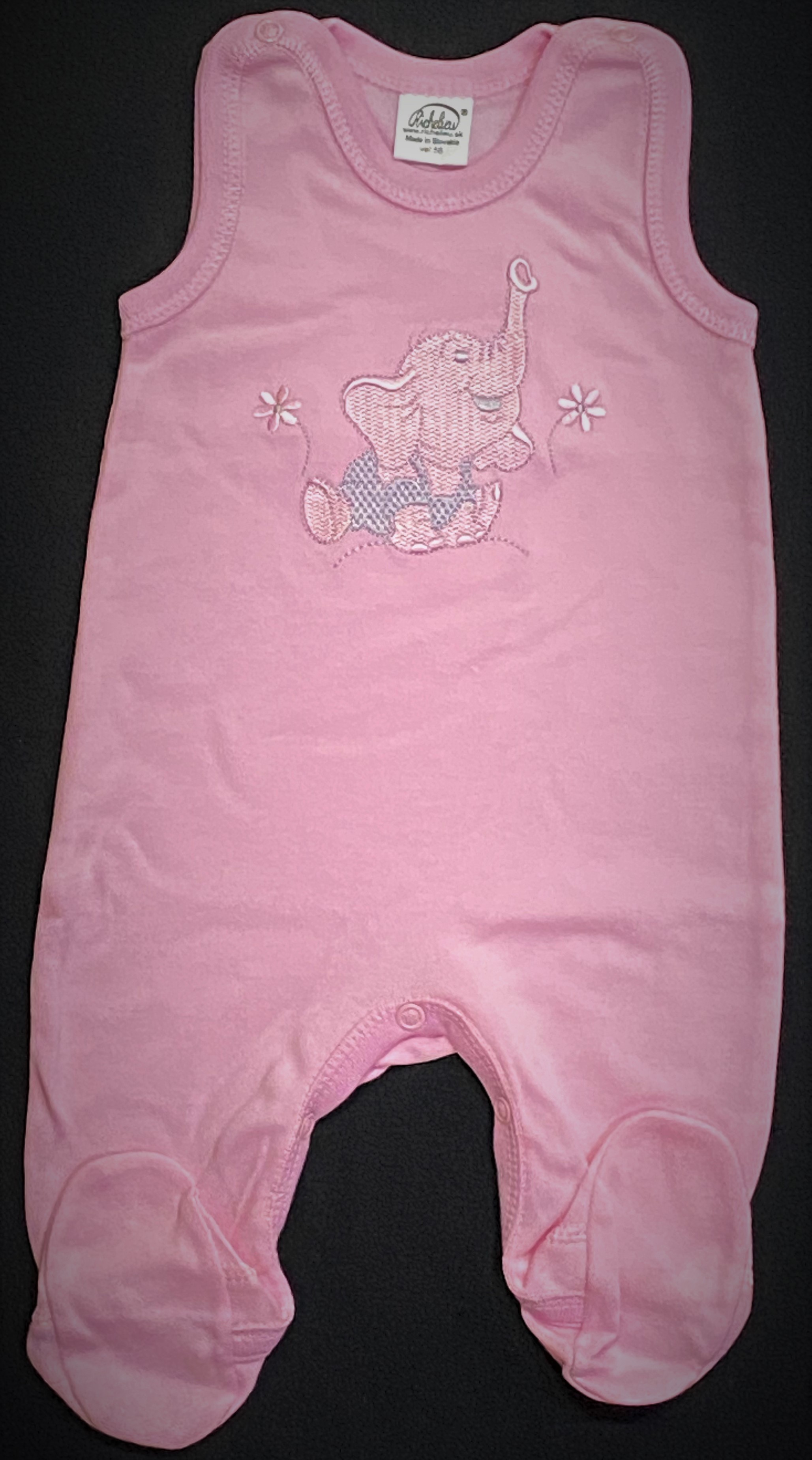 Jednoduché bavlnené dupačky so zapínaním na vnútorných stranách nožičiek a taktiež na pleciach na patentky.