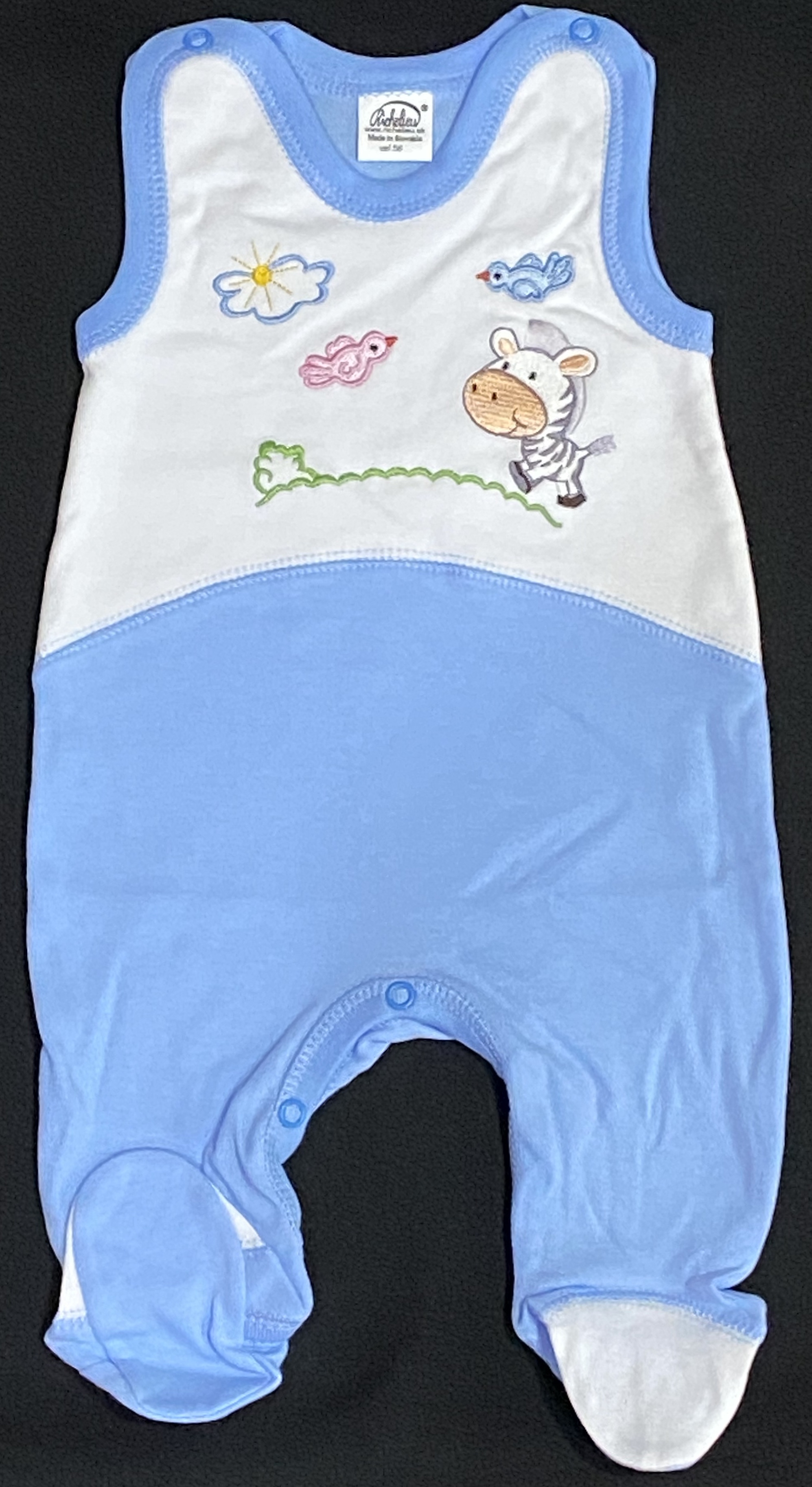 Jednoduché balvnené dupačky so zapínaním na vnútornej strane nožičiek a na pleciach s výšivkou zebry.