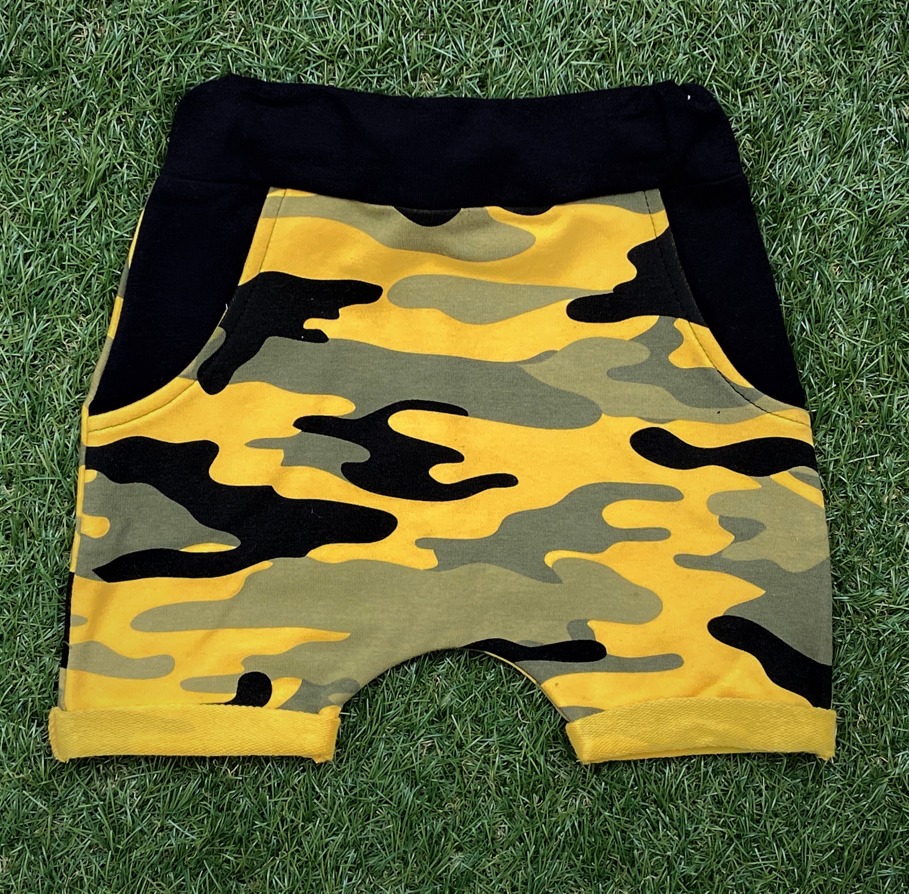 PUDLÁČE krátke - žltý maskáč