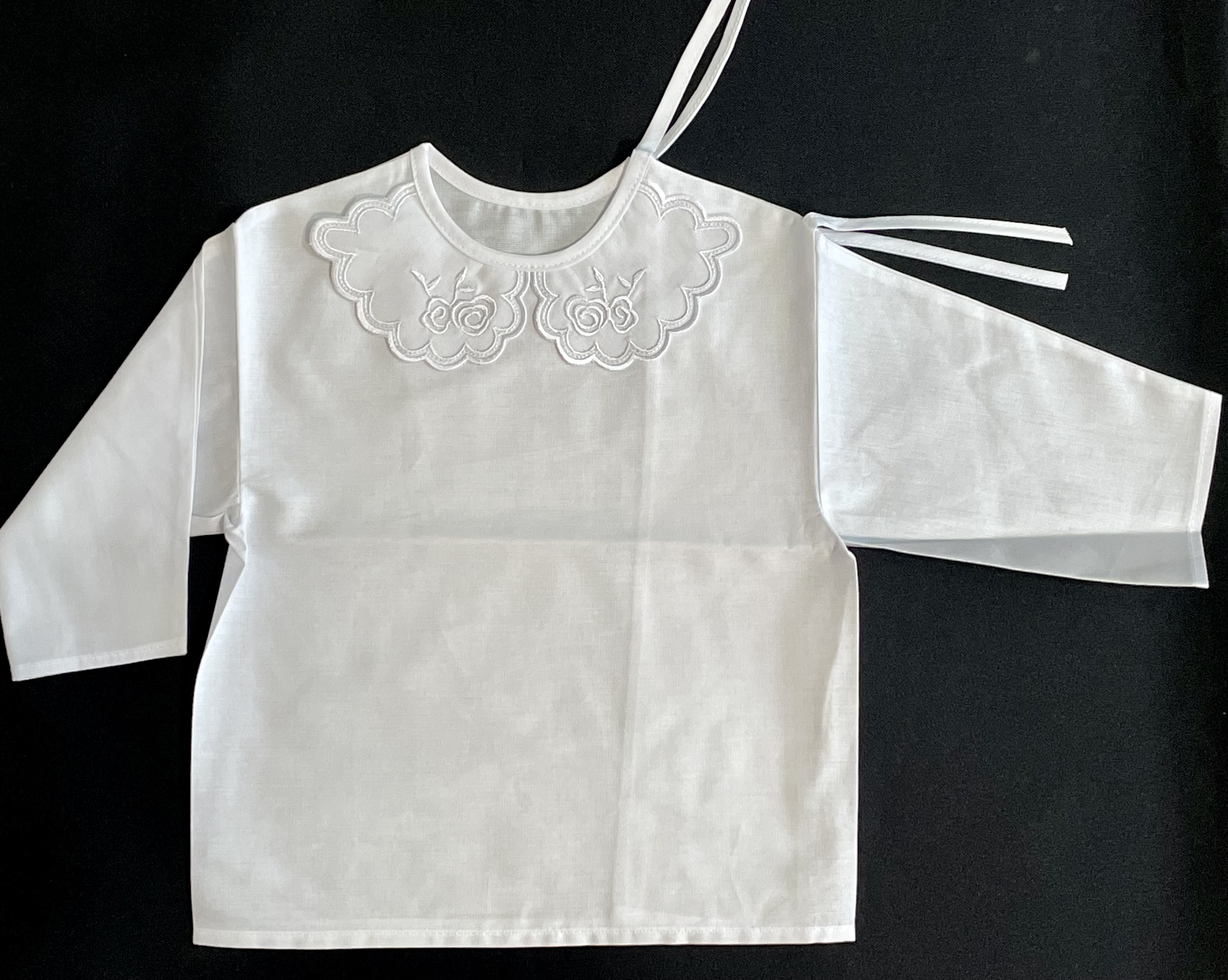 Jednoduchá bavlnená plátená košieľka vhodná na vyšívanie či kreslenie s ozdobným golierom.